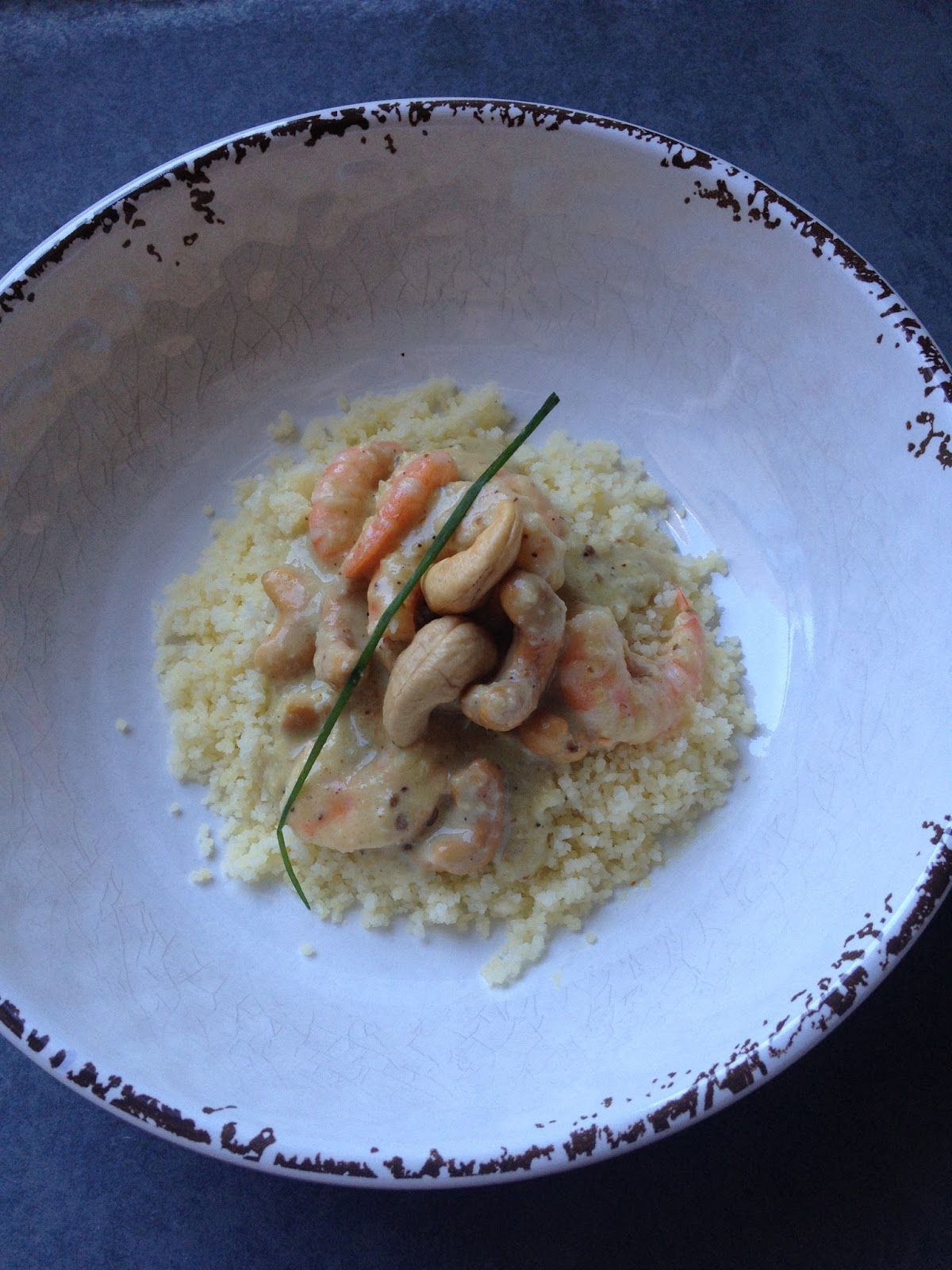 CAMARÕES COM CHILLI, LEITE DE COCO, CASTANHAS E COUSCOUS